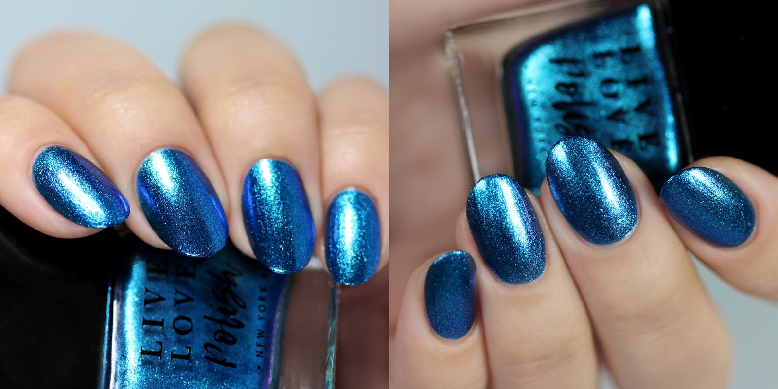 It's a deeper blue-teal base with blue-green shimmer flakes.